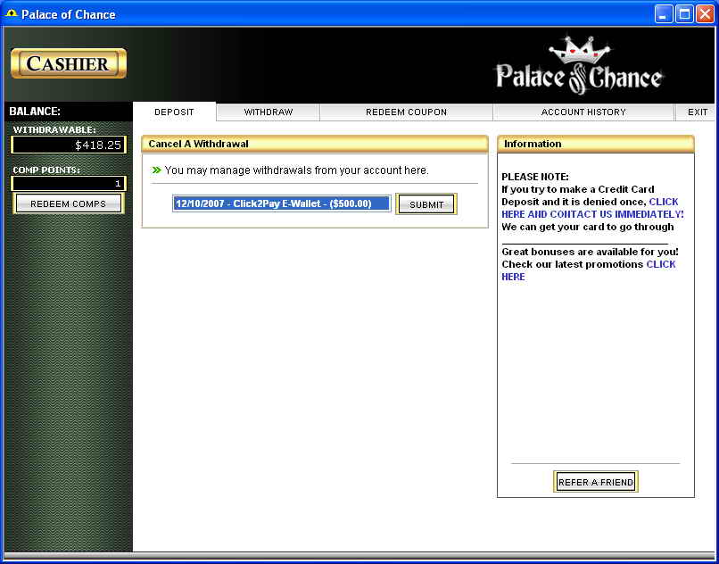 Beh, visto che sembra che Intercasinò Italia abbia deciso di toglierci il crocerossa (da Gennaio 08 in poi), ho pensato bene di sottrargli qualche soldino! :nono: