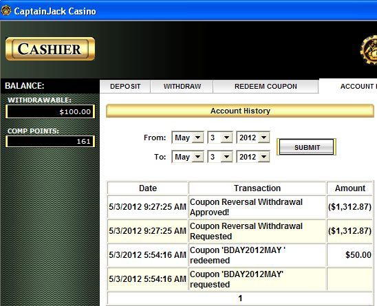 In questo casino ho giocato solo una volta, ho richiesto il prelievo di 60$ e mi hanno approvato i docs in pochi giorni (senza bisogno del faxform) e mi hanno detto che passeranno altri 15 buisness day prima di ricevere il pagamento.. insomma il solito noiso mesetto di attesa, per il resto sembra serio