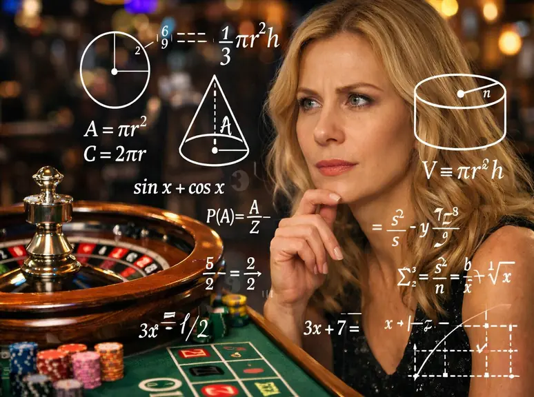 Immagine concettuale sulla roulette: una giocatrice analizza il tavolo mentre formule matematiche visualizzano i limiti dei metodi di puntata.